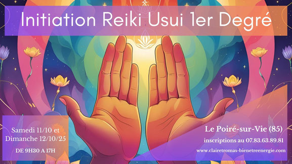 Lien pour vous inscrire à l'initiation Reiki Usui 1er degré des 11 et 12/10/25 - cliquez ici